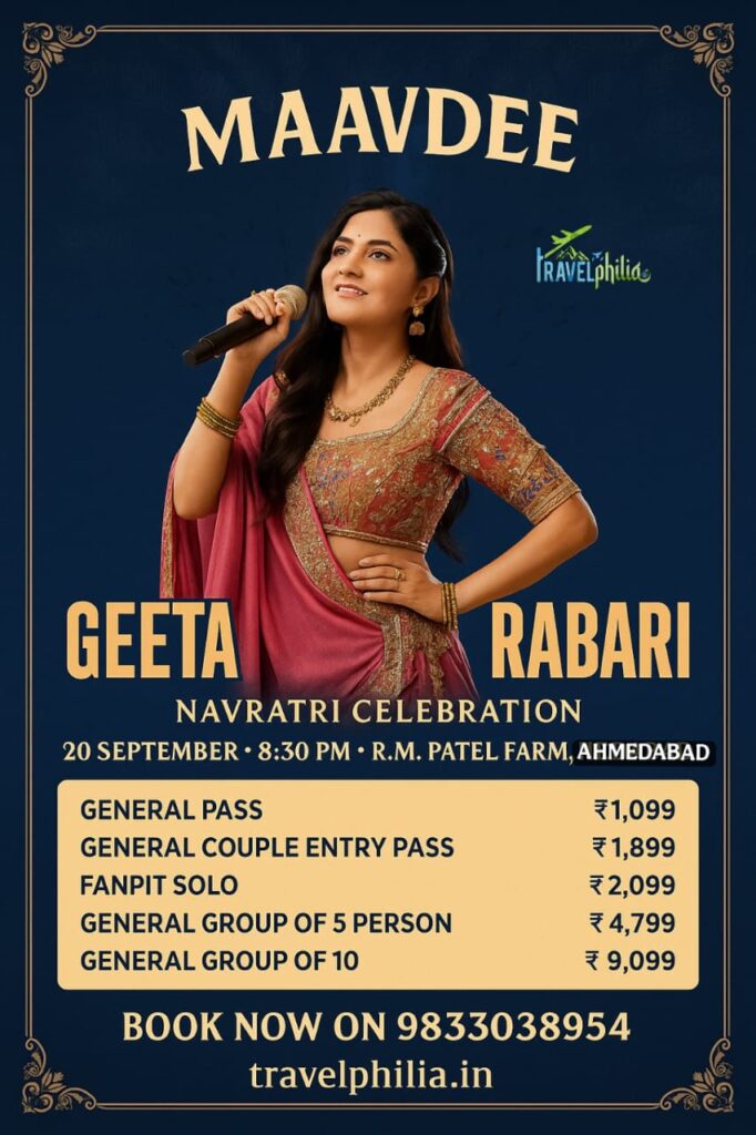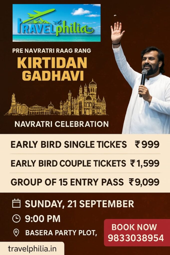 Don’t miss the chance to dance to the tunes of Gujarat’s most iconic voices. Call/WhatsApp: 9833038954 or visit travelphilia.in to secure your passes today!